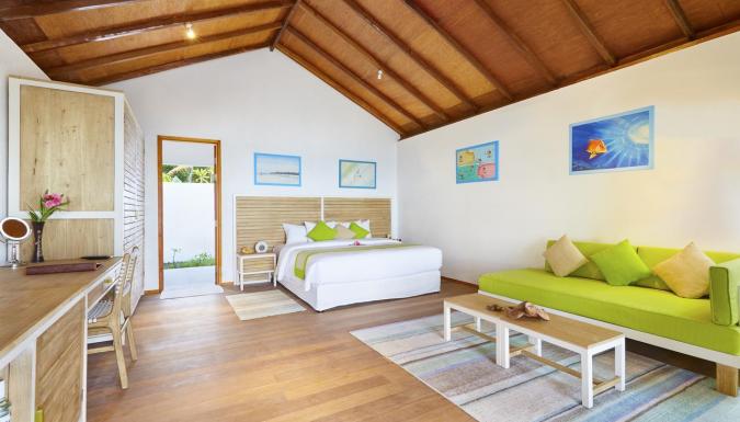 Отель расположен в районе атолла Лавиани. Время в пути от Международного аэропорта Велана составит 40 минут на гидросамолете.