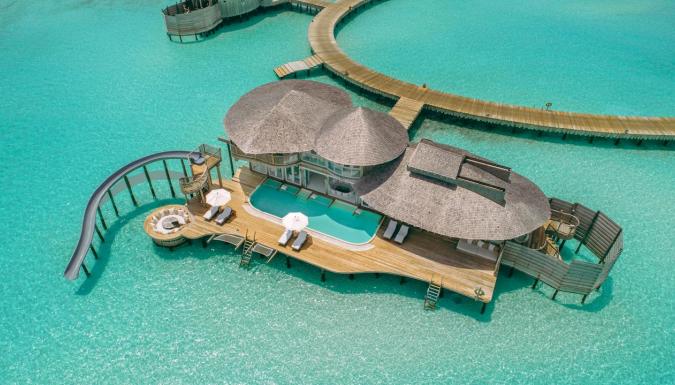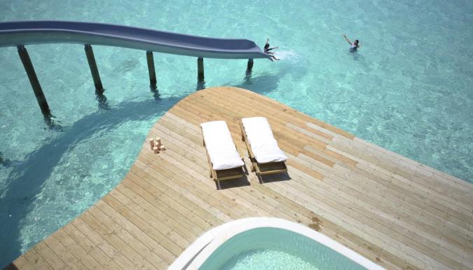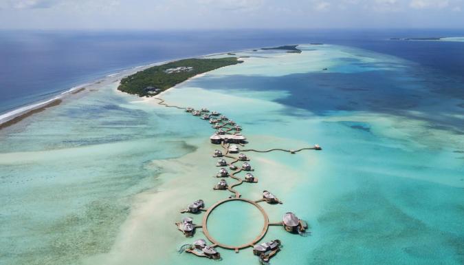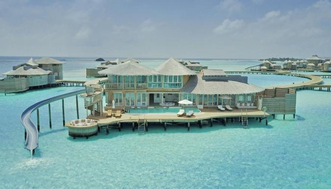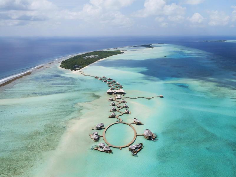 Отель на тропическом острове, окруженном бирюзовой лагуной с фантастическим подводным миром. Стильные двухэтажные виллы с частными бассейнами, часть из которых имеют водные горки. На территории курорта имеется спа-центр, кинотеатр под открытым небом и обсерватория. Здесь можно заняться йогой, дайвингом или теннисом. Подойдет для семейного отпуска, романтического отдыха.