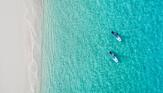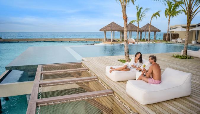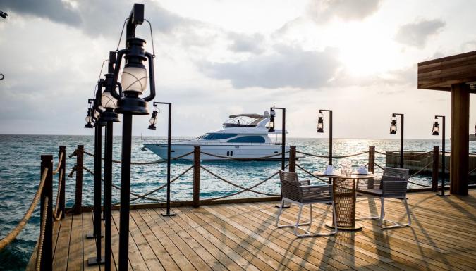 В отеле работают 5 ресторанов. В кафе The Lighthouse можно полюбоваться панорамным 360-градусным видом на Средиземное море и отведать блюда, вдохновленные южно-азиатским кулинарным стилем. В кафе Umi можно отведать блюда, вдохновленные традициями Южной Азии, а также блюда, приготовленные из экологически чистых местных и экологически чистых ингредиентов, выращенных в тщательно отобранной гаммой. В отеле The Retreat, предназначенном только для взрослых гостей, работает бар The Retreat с видом на глубокую голубую лагуну. Гости могут отправиться в круиз на закате, устроить пикник или поучаствовать в вечерних киновечеринках под звездным небом.