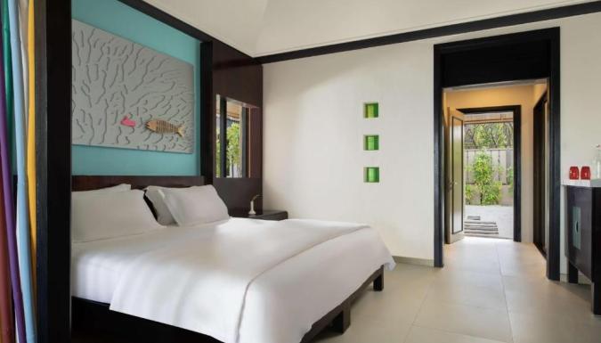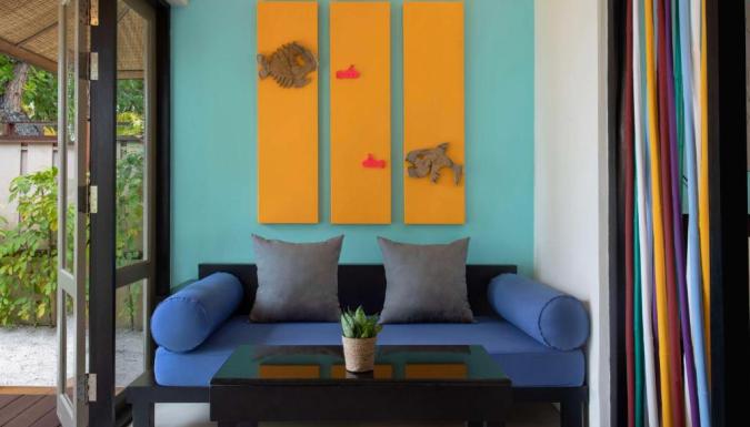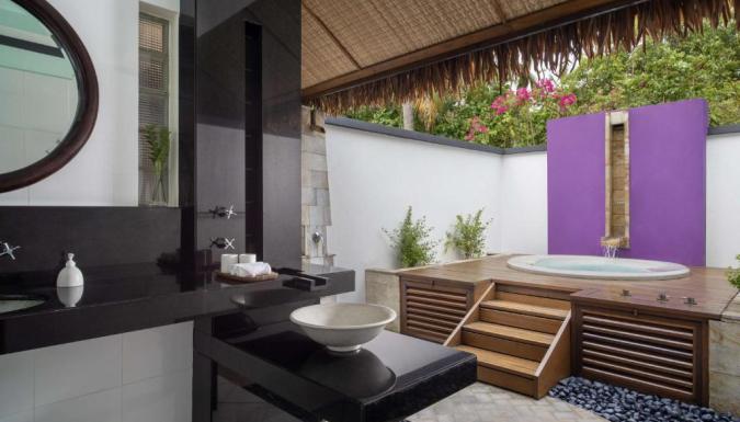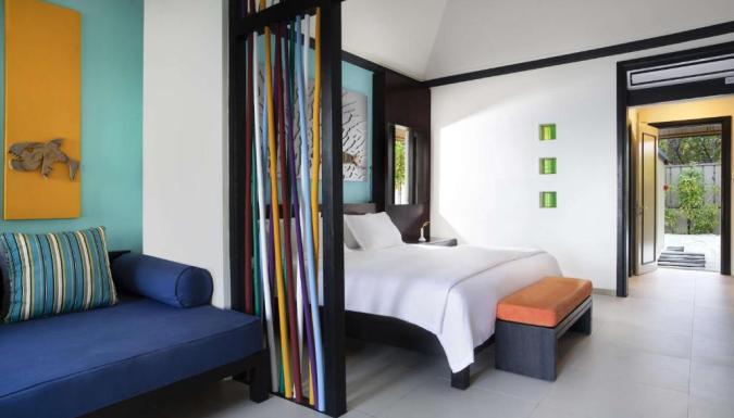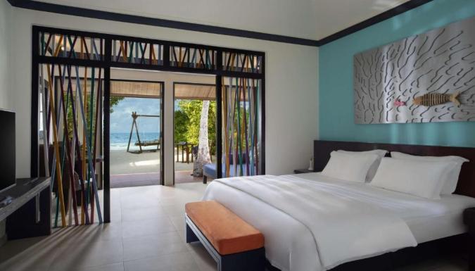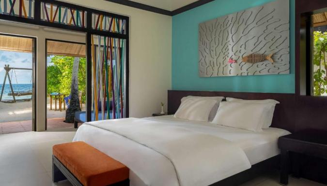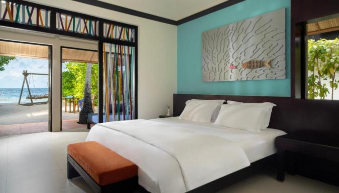 Виллы с соломенной крышей на курорте предлагают Wi-Fi в номере и обеденные и гостиные зоны в собственных садах. Из окон открывается вид на океан и предоставляются туалетные принадлежности. В некоторых виллах есть открытый бассейн с гидромассажем. На каждой вилле есть мальдивские качели.