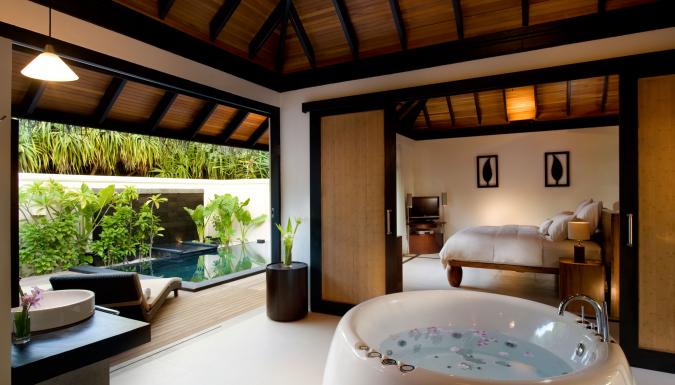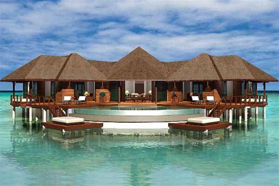 Типы номеров: Всего в отеле -84 индивидуальные виллы, расположенные на берегу острова или на сваях над водами лагуны. 22 Beach bungalow (45 кв. м., общая площадь - 150 кв.м.): расположены в саду с выходом на пляж. Tеррасa (105 кв. м), беседка, открытый персональный бассейн с кушеткой и двумя шезлонгами, спальня с гостиной зоной, двуспальной кроватью, ванная комната на открытом воздухе с ванной и душевой кабиной.2 взрослых + 1 ребенок или 1 взрослый + 1 младенец до 2 лет. 24 Sunrise Water Villa (70 кв. м.,общая площадь - 110 кв.м.): расположены на сваях над водой. Вид на океани прямой спуск к воде.Tерраса (40 кв. м) с открытым персональным бассейном, гамаком над водой и качелей. Спальня с отдельной гостиной зоной со стеклянным полом, двуспальной кроватью, ванная комната с джакузи, двумя умывальниками, закрытыми душевой кабиной и туалетом. Максимальное размещение:2 взрослых + 2 ребенка до 16 лет или 3 взрослых + 1 ребенок до 16 лет. Размещение с детьми до 8 лет не рекомендуется. 23 Sunset Water Villa (70 кв. м.,общая площадь - 110 кв.м.): расположены на сваях над водой. Вид на океани прямой спуск к воде.Tерраса (40 кв. м) с открытым персональным бассейном, гамаком над водой и качелей. Спальня с отдельной гостиной зоной со стеклянным полом, двуспальной кроватью, ванная комната сджакузи, двумя умывальниками, закрытыми душевой кабиной и туалетом. Максимальное размещение: 2 взрослых + 2 ребенка до 16 лет или 3 взрослых + 1 ребенок до 16 лет. Размещение с детьми до 8 лет не рекомендуется. 12 One-bedroom Beach Suite (70 кв. м.,общая площадь - 225 кв.м.): расположены в саду рядом с выходом на пляж. 2 террасы (145 кв. м), беседка, открытый персональный бассейн, частная беседка, с шезлонгами на пляже, гостиная, спальня с двуспальной кроватью, ванная комната на открытом воздухе с джакузи и душем.Максимальное размещение: 2 взрослых + 2 ребенка или 2 взрослых + 1 младенец до 2-х лет. 1 Two-bedroom Grand Water Suite: (165 кв.м., общая площадь - 350 кв. м): расположена на сваях над водой. Панорамный вид на океан с двумя прямыми спусками к воде. Tерраса с открытым персональным бассейном, шезлонгами, качелями и гамаком. Гостиная имеет отдельный санузел и выход в столовую зону, небольшую кухню. 2 спальни, в каждой двуспальная кровать и ванная комната с джакузи и душевой кабиной, двумя умывальниками и санузлом.Максимальное размещение: 4 взрослых + 1 ребенок или 1 взрослый + 1 младенец до 2-х лет . Размещение с детьми до 12 лет не рекомендуется. 2 Two-bedroom Royal Island Suite (440 кв.м., общая площадь - 600 кв. м). Отдельно стоящая двухэтажная пляжная вилла. Первый этаж: гостиная и 2 спальни сдвуспальными кроватями,выходом на террасу и к основному инфинити-бассейну (13х7 м) с лежаками, зоной отдыха с качелями и гамаком. Из каждой спальни выход в ванные комнаты на открытом воздухе с джакузи и душевой кабиной, душем под открытым воздухом, двумя умывальниками и туалетом. В ванной комнате основной спальни есть дополнительный бассейн (4х3,6 м) и зона для отдыха.В гостиной - столовая зона, отдельная гардеробная, небольшая кухня. Сауна, хаммам, спа-ванна, собственный спа-павильон,Второй этаж: зона отдыха и развлечений караоке, телескоп, домашний кинотеатр. Вилла имеет индивидуальный выход на пляж.4 взрослых + 2 детей или 2 взрослых + 2 младенца до 2-х лет.