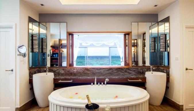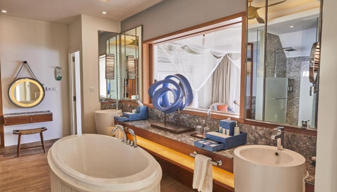 В курортном спа-отеле Centara Grand Island Maldives предлагается размещение на современных виллах с большой ванной комнатой с тропическим душем и обычной или гидромассажной ванной. В числе стандартных удобств — телевизор с плоским экраном, спутниковое телевидение с китайскими каналами, электрический чайник и высокоскоростной доступ в интернет.