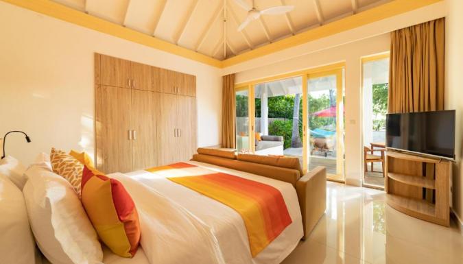 Современный отель с просторными виллами и резиденциями, часть из которых имеет собственные бассейны и горки. На территории этого райского острова с домашним рифом есть изысканные рестораны на любой вкус, детский клуб, SPA-центр. Курорт подходит для семейного отдыха с детьми, для романтического отдыха и для отдыха компании друзей.