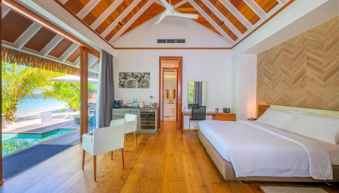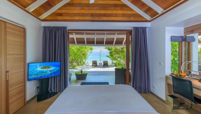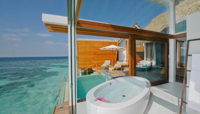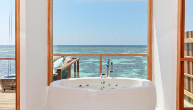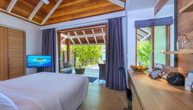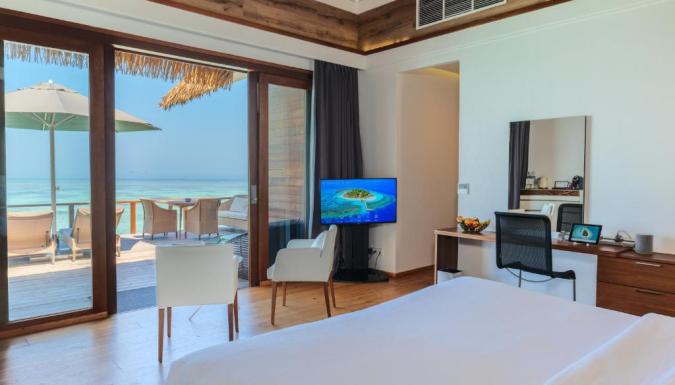 На просторных виллах отеля Kandolhu Maldives есть телевизор с плоским экраном, планшет iPad, колонка с подключением по Bluetooth, видеокамера GoPro Hero5 и собственная ванная комната с душем, ванной и феном.