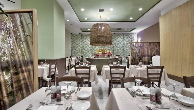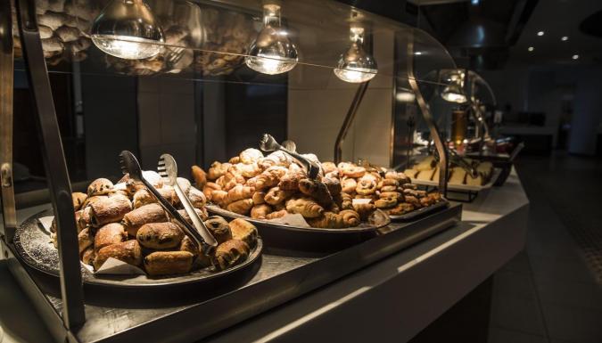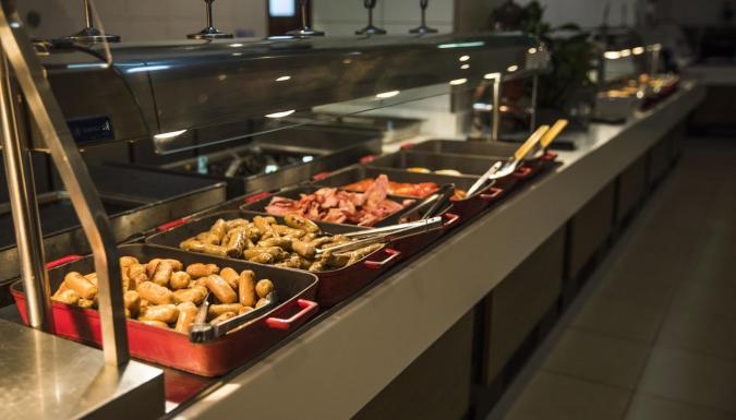 Питание, входящее в стоимость номера, производится в ресторане и состоит из закусок, пиццы, десертов и приготовленных на гриле фирменных блюд. Завтрак «шведский стол» включает в себя мясное ассорти, йогурт, датскую выпечку, фруктовый сок и сухие завтраки. Желающим предоставляется полный английский завтрак.