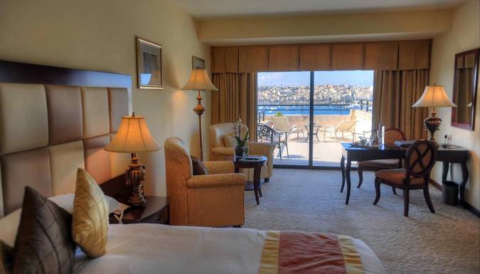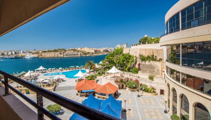 Прибрежный отель Grand Excelsior находится недалеко от исторического въезда в Валлетту. Из окон открывается вид на гавань Марсамшетт и остров Маноэль.