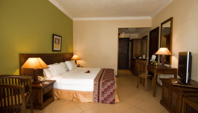 15 Club Room (26 м?, макс. 3 или 2+1 реб). Более просторные номера повышенного уровня комфортности. По наполнению аналогичны номерам Superior и Deluxe. Балкон, вид на горы или океан. Дополнительные услуги для гостей данной категории: бесплатный доступ в интернет, бесплатное пользование парной, сауной и джакузи в SPA-центре.
