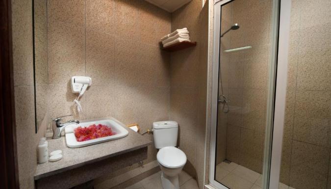 44 Standard Room (43 м?, макс. 3 или 2+1 реб до 12 лет). Простые в оформлении, но комфортабельные номера. Спальня с двуспальной кроватью или двумя раздельными односпальными, ванная комната с душем, балкон или терраса.