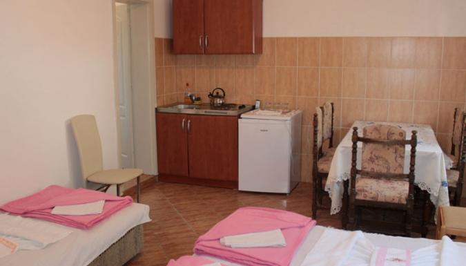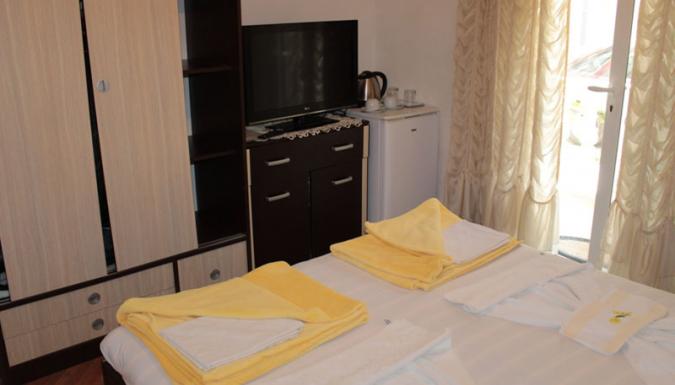 Трехэтажное здание с собственной парковкой. На вилле — 6 двухместных и 2 трехместные студио. Один номер без балкона. Уборка и смена полотенец – каждый третий день, смена постельного белья – через семь дней.