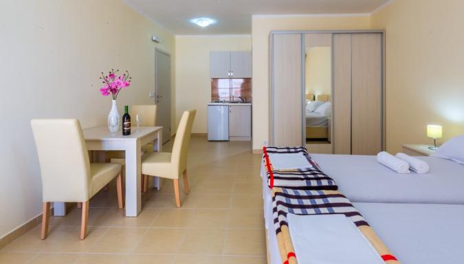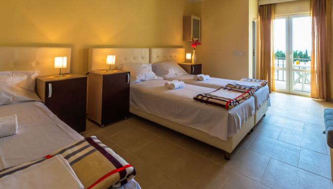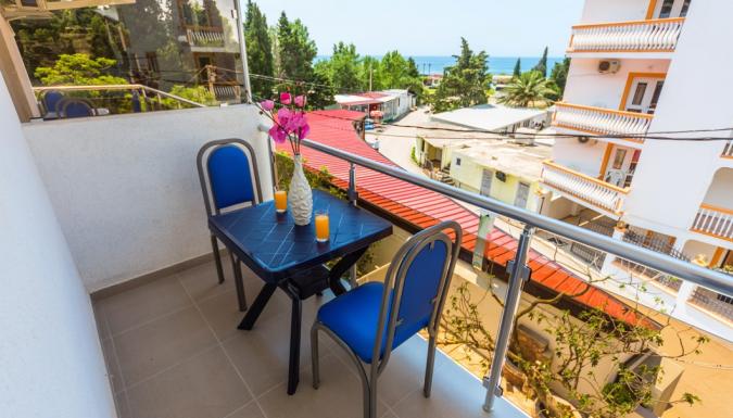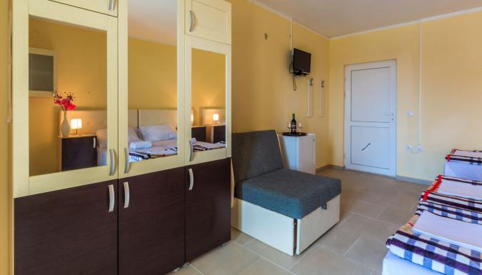 В номерах: балкон с видом на море, кондиционер, кабельное ТВ, мини-кухня с холодильником, Wi-Fi.