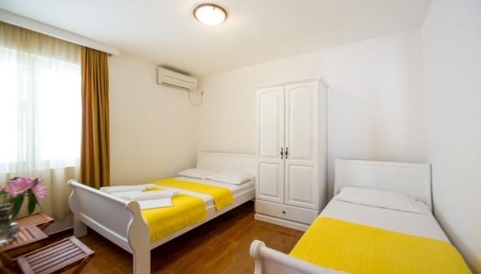 Дом расположен в тихом районе в Будвы, в 150 м от «Славянского пляжа», через дорогу. Рядом с виллой расположено множество магазинов, ресторанов и кафе.