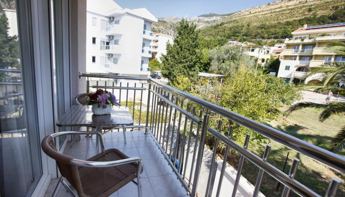 Вокруг много магазинчиков, кафе и ресторанов. Удобно, что в отеле есть своя парковка, так что если захотите арендовать авто и покататься по Черногории самостоятельно, проблем с тем, где оставить машину, не возникнет.