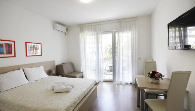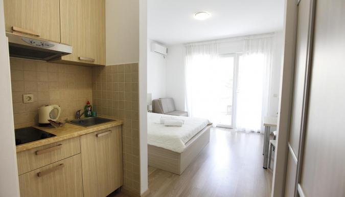 Городок Петровац, 200 м от моря, светлые, стильные и современные апартаменты уровня 4*- как вам такой вариант? До центра городка всего 300 м. В каждой комнате есть все необходимое для полноценного отдыха, а для приготовления пищи оборудован кухонный уголок.