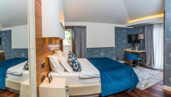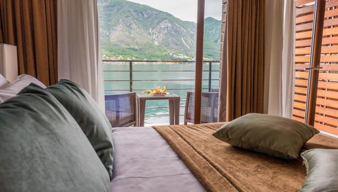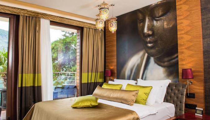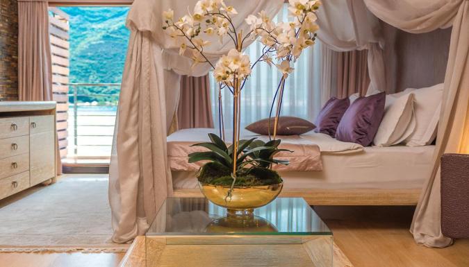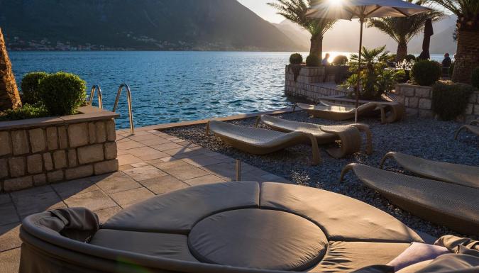 Роскошно декорированный 5-звездочный бутик-отель Forza Mare находится в Доброте, на частном пляже на берегу залива Котор, в 3 км от центра города.