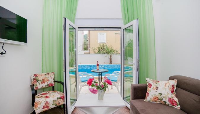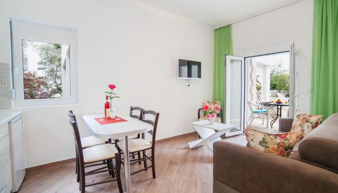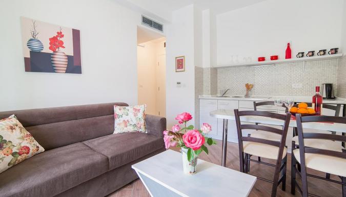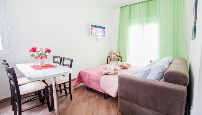 33 м2, балкон, гостиная с раскладным диваном и кухней, спальня с французской кроватью, бесплатный Wi-Fi, кондиционер, собственная ванная комната с душем, фен, бесплатные туалетно-косметические принадлежности, гладильные принадлежности, утюг, холодильник, электрический чайник, телевизор с плоским экраном, кабельные каналы.