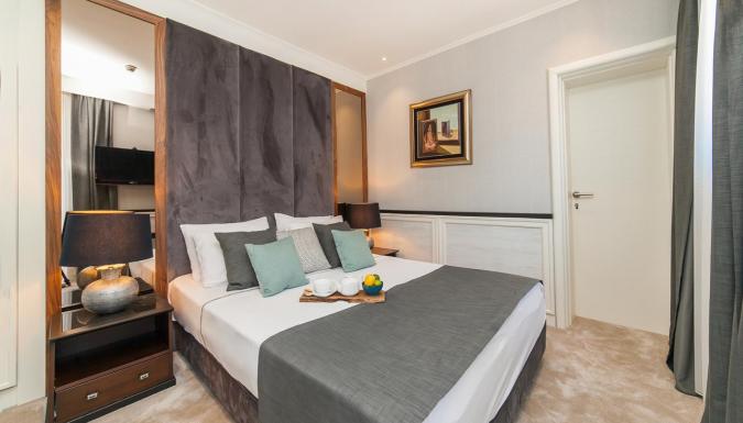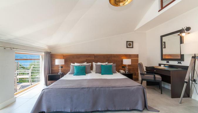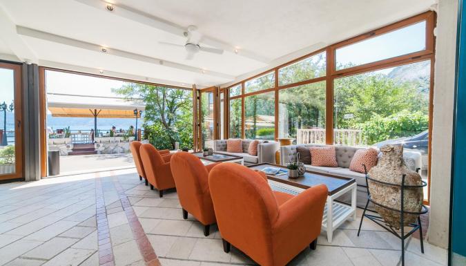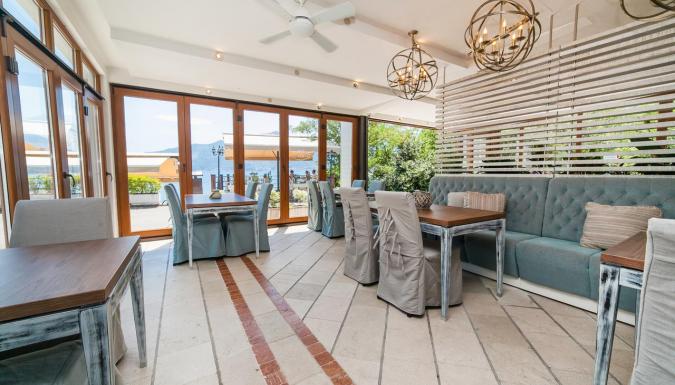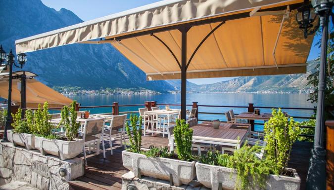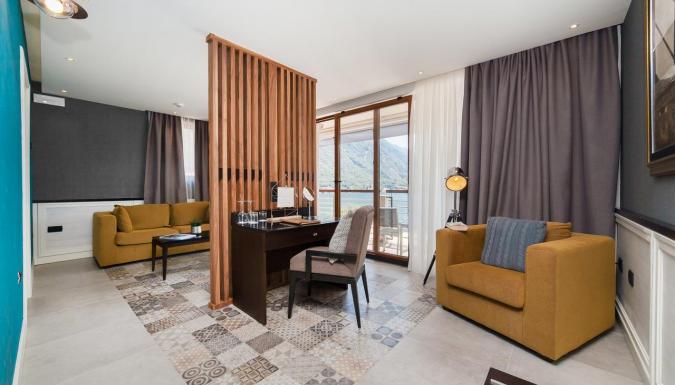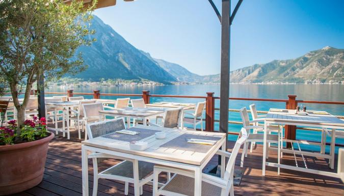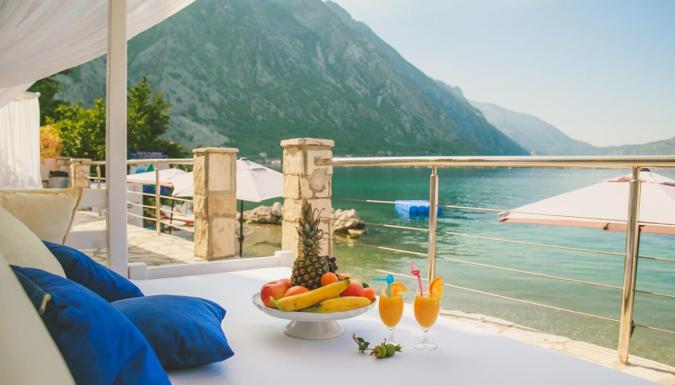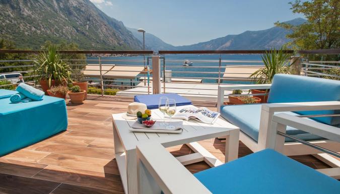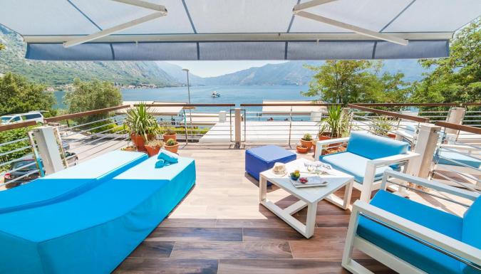 Отель Amfora находится на краю Которского залива. С балконов люксов открывается живописный вид на волны.