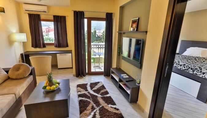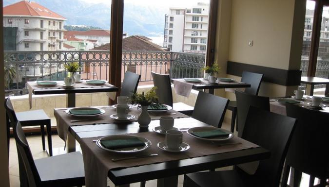 В ресторане отеля гостям предлагается обильный завтрак. Здесь вы также сможете полюбоваться панорамным видом на город Будва.