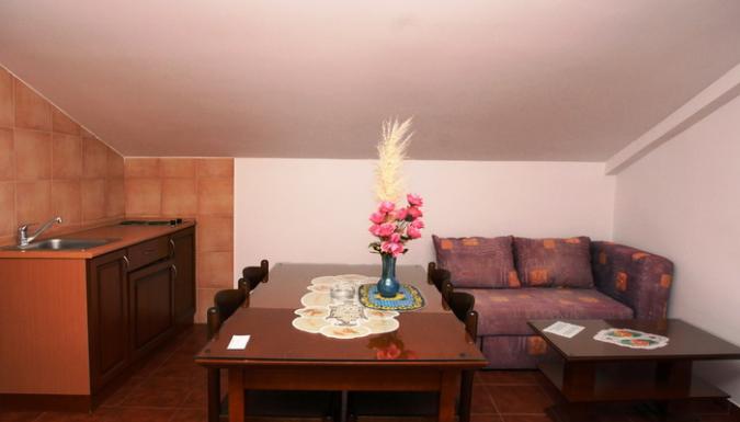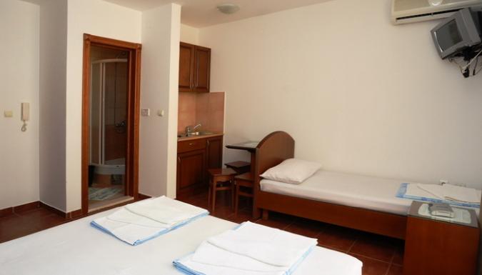 Apart – Номер с боковым видом на море. 50 м2 , гостиная (мини-кухня, диван-кровать), спальня (французская кровать и отдельная кровать). Новая мебель, кондиционер, телевизор, ванна/душ, туалет
