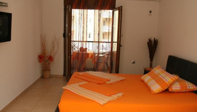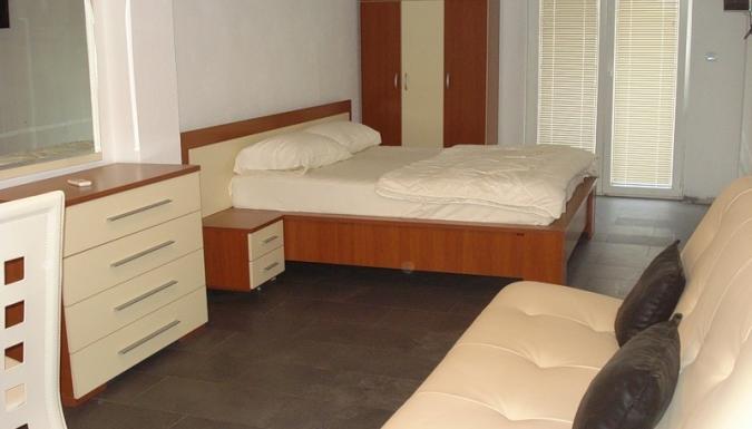 Апартамент 04+1 (1 этаж): спальня - французская кровать, гостиная (раскладной диван и кресло), мини-кухня, терраса.