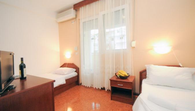 DBL: 16 м2, две отдельные кровати, душ/туалет, балкон 5м2, боковой вид на море.