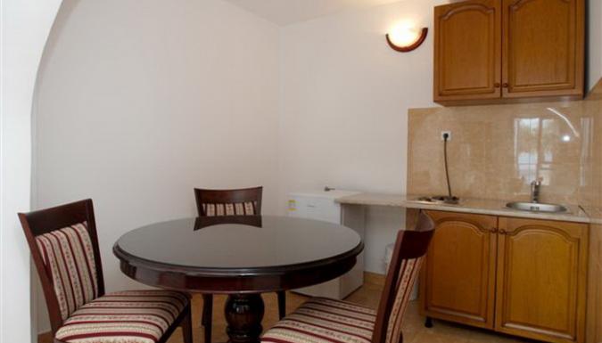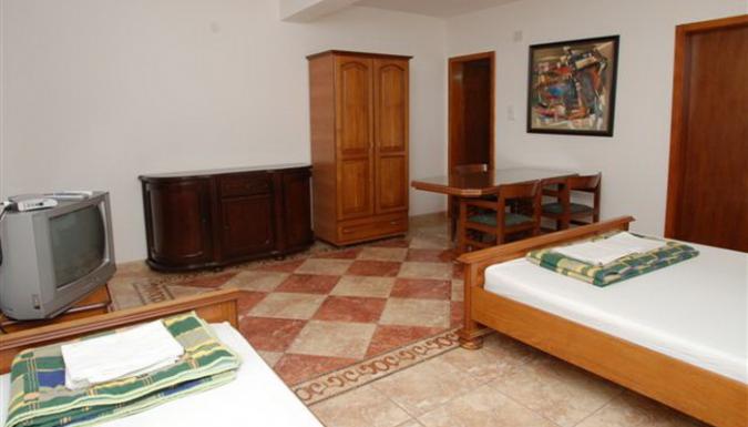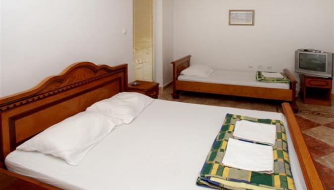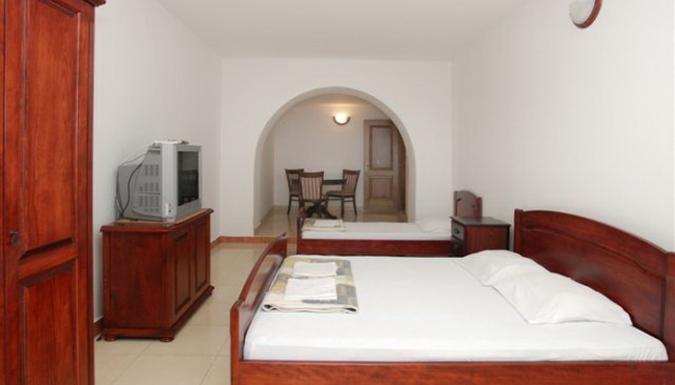 Апартамент 05 – 50 кв.м., две комнаты: спальня с французской кроватью и спальня совмещеная с кухней с французской и дополнительной кроватью, душ/туалет, балкон с видом на море, кондиционер