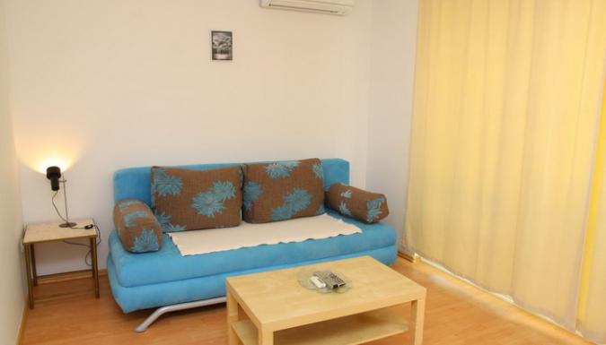 APP 05: 60 м2 , гостиная с раскладным диваном, 2 спальни (в первой французская кровать, во второй 2 отдельные кровати), мини кухня, 2 ванные, вид на море.