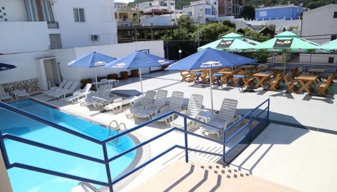 В отеле: Основной ресторан, ресторан a-la cart, летний сад с бассейном с морской водой, мини-тренажерный зал, пиццерия, блинная, гриль.