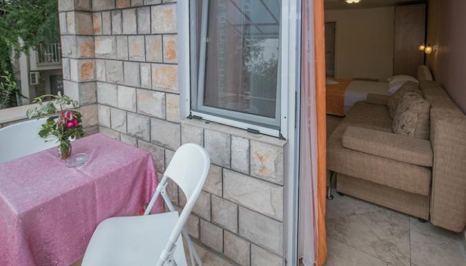 DBL+ ex.bed: французская кровать, раскладной диван, балкон, кондиционер, ванная комната.