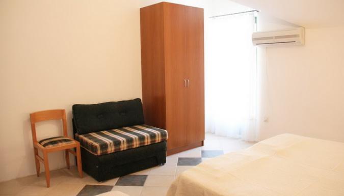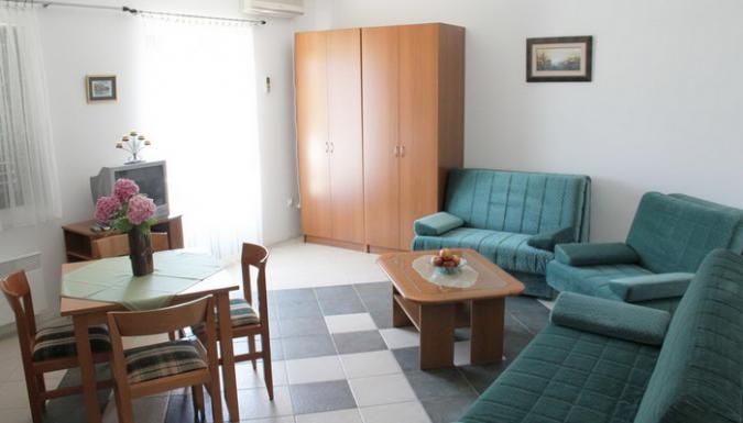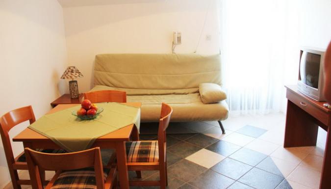 - APP 04 LUX: комфортабельные апартаменты, 54 м2 , терраса с видом на море 25 м2, спальня с французской кроватью и раскладной диван и раскладное кресло в гостиной. Размещение мин. 2 человека, макс. 4 человека.