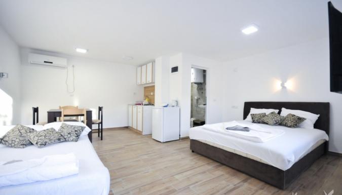 №7,8,10 Studio 03+1: французская кровать + раскладной диван, кухонный уголок, ванная комната с душем, терраса