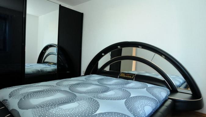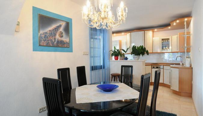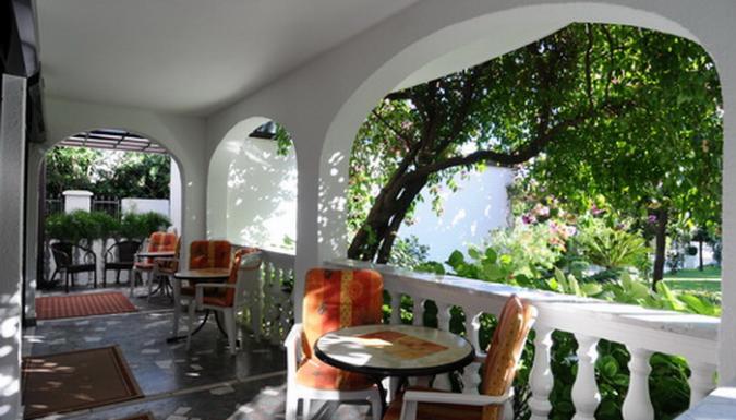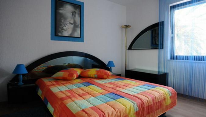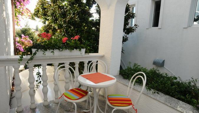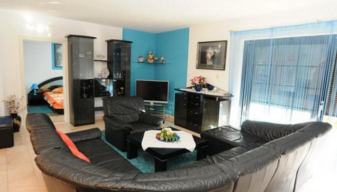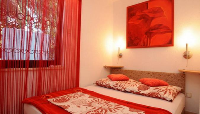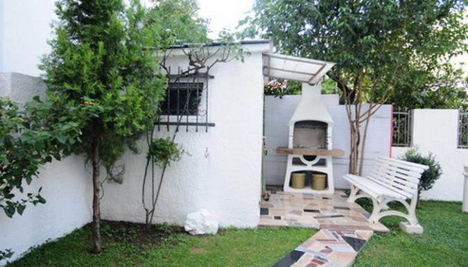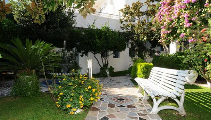 App 04 (около 110 кв. м + терраса 20 кв. м, вид на сад, две спальни с французскими кроватями, гостиная с угловом диваном, большой обеденный стол, выход на большую террасу с видом в сад, отдельная большая кухня, выход на маленькую террасу с видом в сад, стиральная и посудомоечная машина)