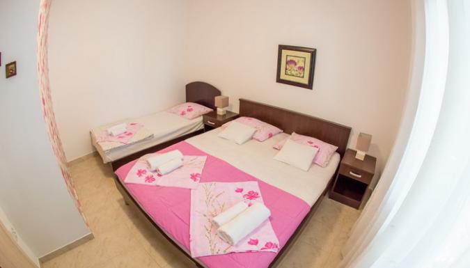 Расположена в тихом месте, в районе Славянской пляжи. Расстояние до пляжа – 300- 400 м, до Старого города - 15 минут пешком