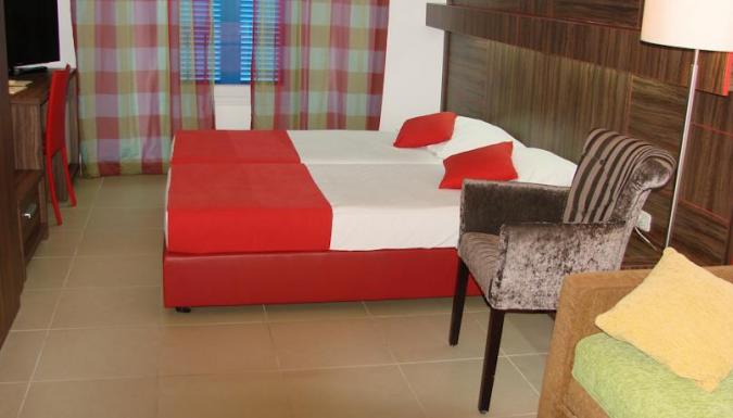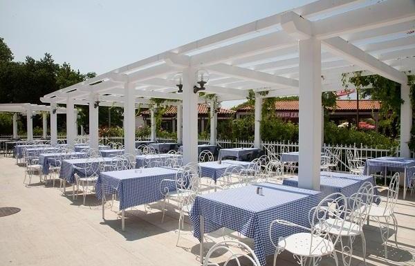 Самый большой туристический комплекс в регионе, представляет из себя поселок. Перед сезоном 2005 года часть номеров была отреставрирована. Расстояние от номеров до моря - от 50 до 150 м, т. к. территория комплекса занимает большую площадь. Рядом с отелем находится центральная набережная, где расположено множество ресторанов, баров, луна-парк и несколько дискотек. До старого города можно добраться на туристическом паровозике или прогуляться вдоль моря. Отель состоит из 11 корпусов и 310 апартаментов, связанных между собой улочками, соединяющимися в центральную улицу "Корзо". В отеле бары, 2 открытых бассейна, детский бассейн, теннисные корты, дискотека, кафе, конференц-зал, магазин (сувениры), обмен валюты, парикмахерская, рестораны, телевизионный холл, торговый центр, услуги врача, химчистка.