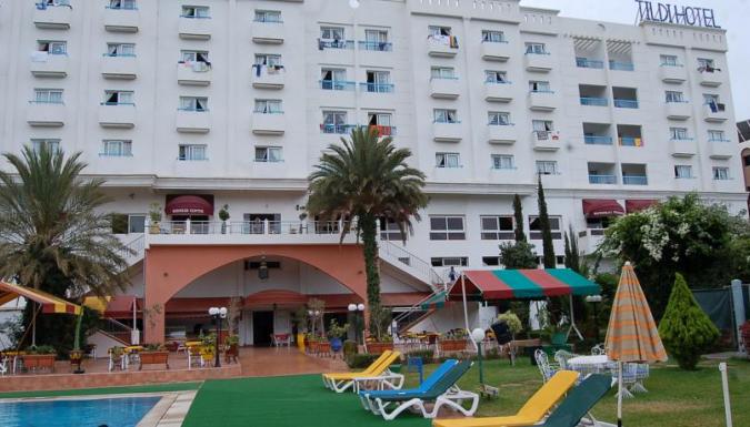отель Tildi Hotel расположен в пределах пешей досягаемости от центра Агадира и всего в 5 минутах ходьбы от пляжа. Рядом с отелем Вы найдете многочисленные рестораны, бары, магазины и восточный базар. Недавно построенный (в 2008 году) отель предлагает 116 комфортабельных номеров, теплую атмосферу и высокое качество обслуживания. Помимо нескольких ресторанов и баров, отеля располагает бассейном, сауной, джакузи и другими средствами обслуживания. Инфраструктура отеля: конференц-зал; бизнес-центр, круглосуточный ресепшн, обмен валюты; услуги прачечной; Wi-Fi Интернет; сейф на ресепшн; парковка; услуги няни; комната для хранения багажа, открытый бассейн – с подогревом в зимнее время; сауна; хамам; джакузи; массаж; тренажерный зал; поле для игры в гольф (недалеко от отеля), игровая площадка. Рестораны, бары: ресторан международной кухни - «шведский стол»; ресторан марокканской кухни; снэк-бар у бассейна; бар с террасой и видами на горы и море. Песчаный пляж расположен в 5 минутах ходьбы от отеля.