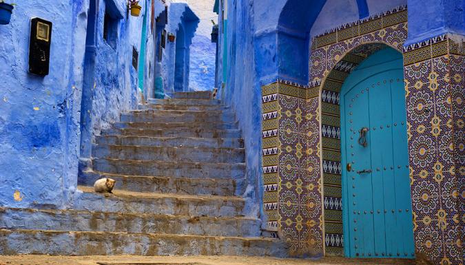Шефшауэн – это маленький город, расположившийся на склонах гор между Танжером и Тетуаном. Название города произошло от своеобразной формы вершины горы Риф, напоминающей рога козы. В дословном переводе «Сhef Chaouen» означает «взгляд на рога». Практически все дома старой части города окрашены в небесно-синие и белые цвета. Также город известен производителями марихуаны со своими большими пригородными плантациями, в результате чего Шефшауэн получил название «столицы гашиша». - 6