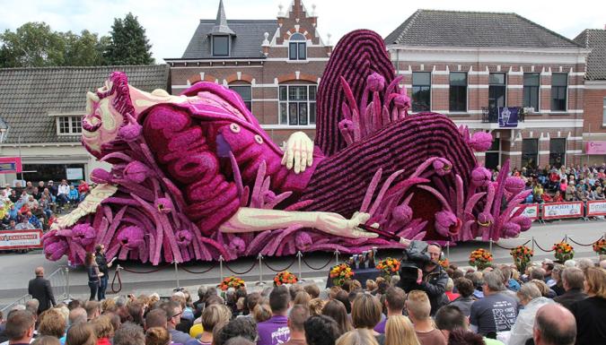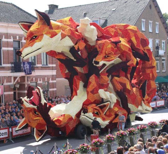 20 городских районов соревнуются между собой в создании лучшей цветочной скульптуры. Для изготовления скульптур используют тысячи георгин, выращенных специально для парада. А подготовка к такому масштабному действию начинается еще с мая. Местные жители так любят этот парад, что добровольно работают сутки напролет над созданием грандиозных и красочных скульптур.