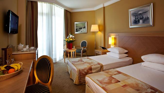 Балкон, спутниковое телевидение, музыкальные каналы, мини-бар, прямая телефонная связь, система отопления-охлаждения WRW, душ, санузел, фен, ковровое покрытие.
