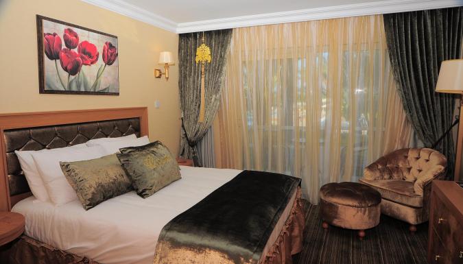 кондиционер, центральное отопление; ванная комната с душем; 32” LCD-телевизор с кабельными каналами; телефон; сейф; мини-бар; балкон с видом на море или горы.