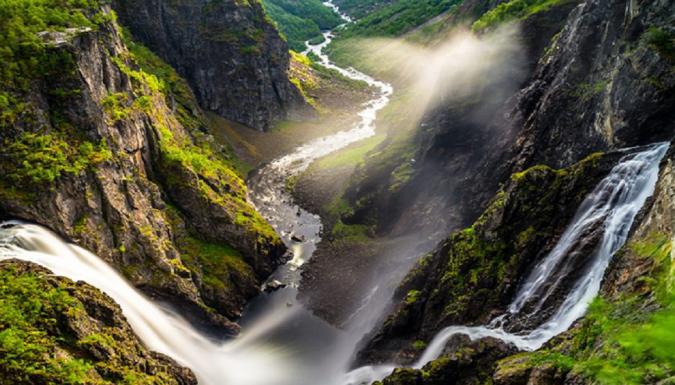 Для желающих поездка по уникальной горной железной дороге «Фломсбана», (бронировать заранее обязательно! за доп. плату - 85 € с взр., 75€–дети 4-15 лет ) – считается шедевром инженерного дела – около 20 километров подъемов и спусков через 20 туннелей под наклоном в 18 градусов. Восхитительные пейзажи, прекрасные виды на леса, реки, водопады, покрытые снегом вершины гор и раскиданные в долинах домики с фермами. Остановка на смотровой площадке около каскадного водопада Кьосфоссен.