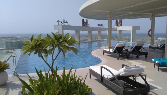 В отеле есть бальный зал Crystal Ballroom вместимостью до 900 гостей, 8 конференц-залов, семейный бассейн на крыше и отдельный женский бассейн, а также ресторан Taybat, работающий в течение всего дня. Гости могут поиграть в теннис на крыше, искупаться в бассейне на крыше, сделав заказ прямо в баре у бассейна. Ближайший аэропорт — международный аэропорт Маската, расположенный в 15 км от отеля Grand Millennium Muscat.