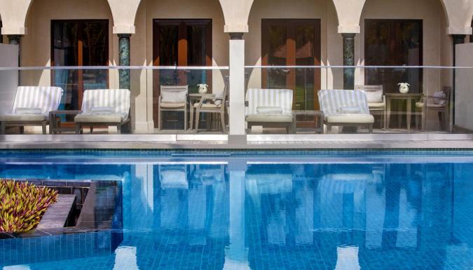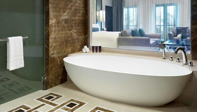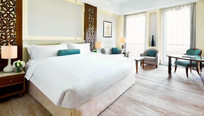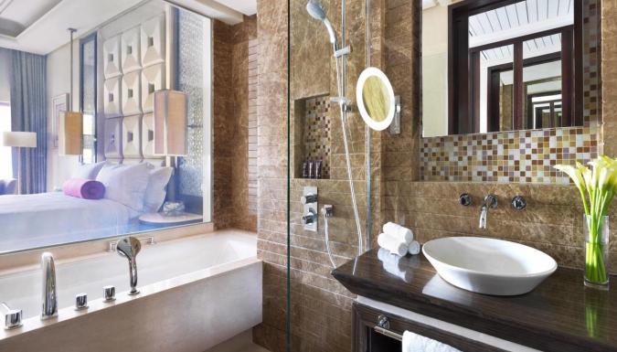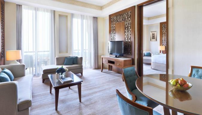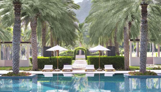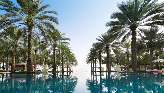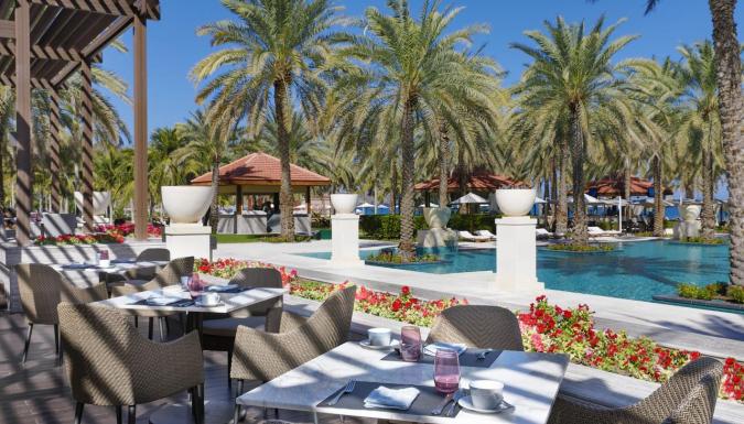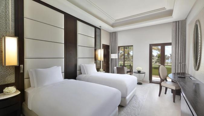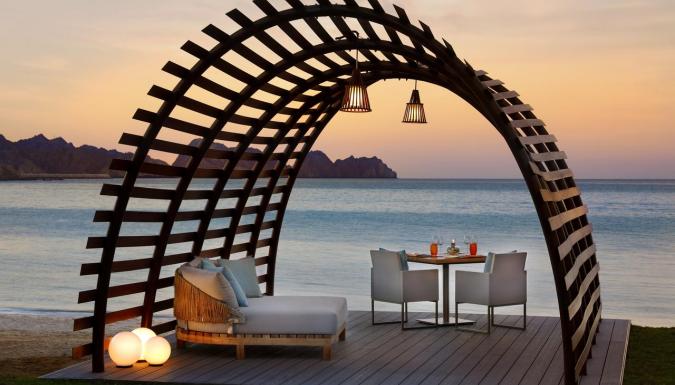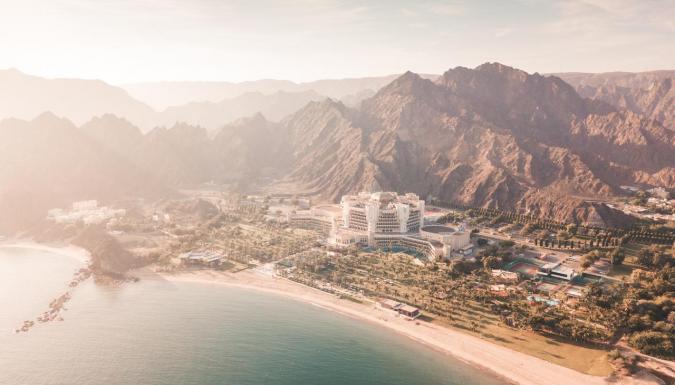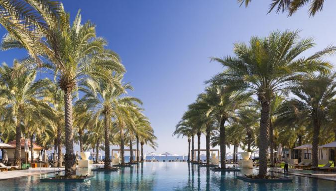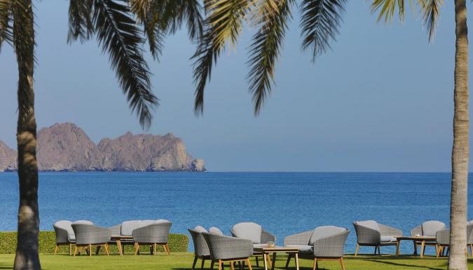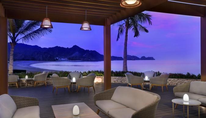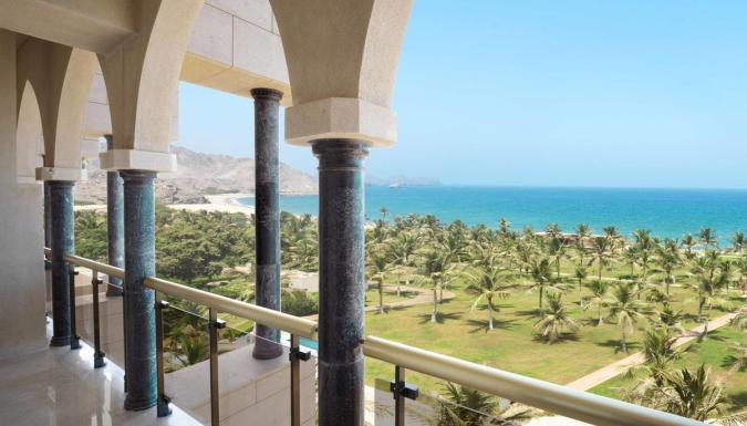 Гостей этого роскошного 5-звездочного курортного отеля приглашают окунуться в уникальную атмосферу дворца, где царит традиционное оманское гостеприимство. Из него открывается вид на Оманское море и горы Аль-Хаджар на фоне. Отель Al Bustan Palace, a Ritz-Carlton построен на частном пляже протяженностью 1 км, самом длинном пляже в Маскате.