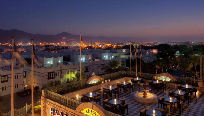 В отеле Grand Hyatt есть 4 собственных ресторана. Выбор блюд варьируется от аутентичной арабской кухни в кафе Mokha до блюд на гриле в ресторане на крыше с видом на Оманский залив. В Sirj Tea Lounge можно попробовать традиционный арабский кофе и чай.