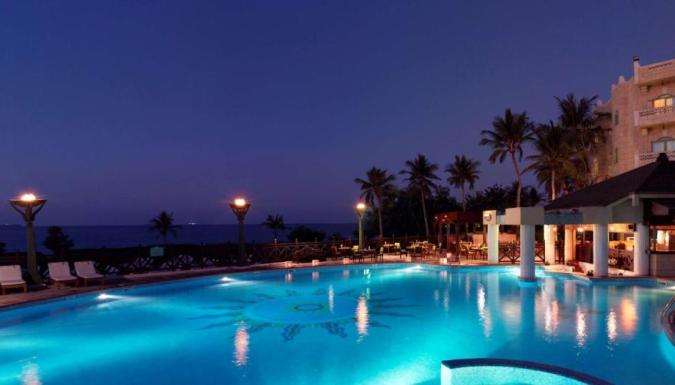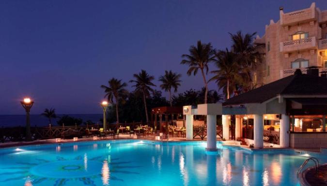 Расположенный прямо на песчаном пляже Аль-Курм, отель Grand Hyatt предлагает просторные номера с балконами, откуда открывается панорамный вид на Оманский залив. Из некоторых номеров открывается вид на горы Хаджар.