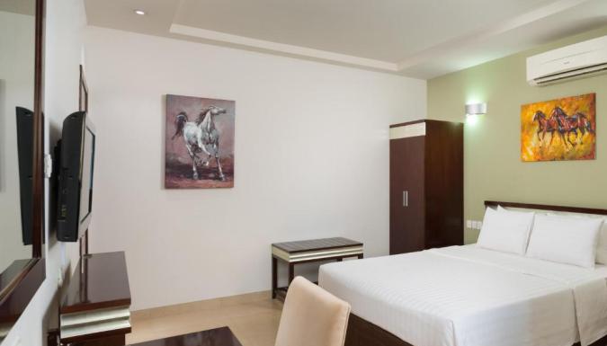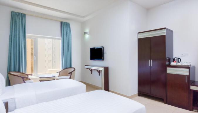 Во всех современных номерах отеля Muscat Dunes постелен кафельный пол. В каждом люксе в вашем распоряжении просторная гостиная зона с мягким диваном и телевизором со спутниковыми каналами, холодильник, шкаф для одежды и электрический чайник. В роскошных ванных комнатах предоставляются бесплатные туалетно-косметические принадлежности.