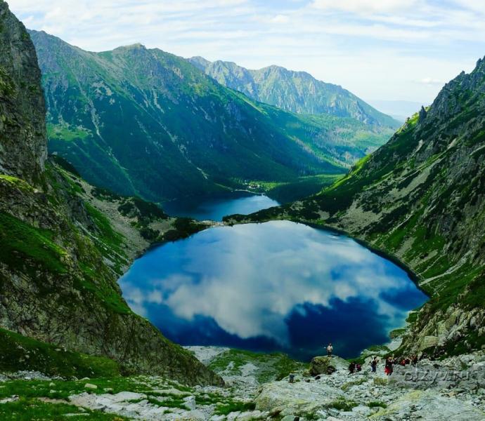 Это один из самых посещаемых туристами уголков в Татрах. Летом здесь действительно толпы народу, зато осенью это место покоряет тишиной и покоем. Вокруг вздымаются скалы, которые живописно отражаются в зеркале воды.