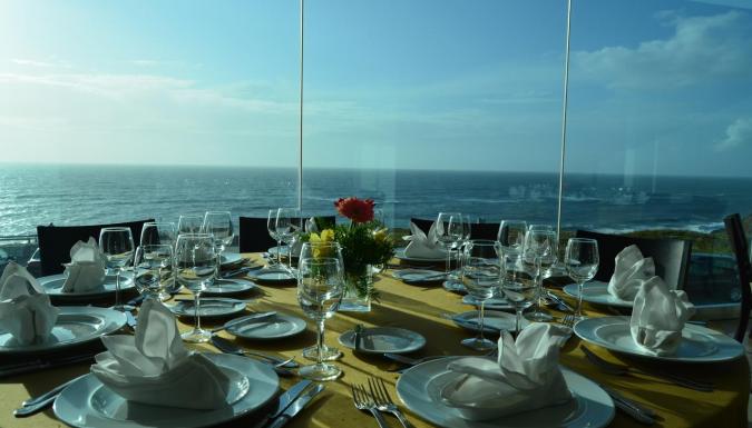 Гости могут отведать изысканные блюда в ресторане, любуясь красками вечернего неба. В непринужденной обстановке бара с телевизором с плоским экраном и зелеными стульями подают напитки.