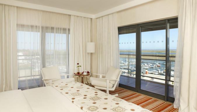 Гостям этого 5-звездочного отеля предлагается проживание в роскошных номерах с балконом и видом на природный парк «Риа-Формоза» и пристань для яхт.
