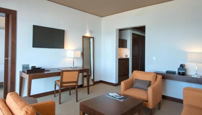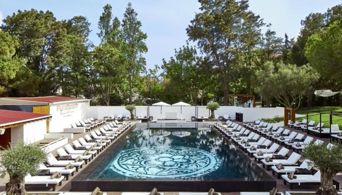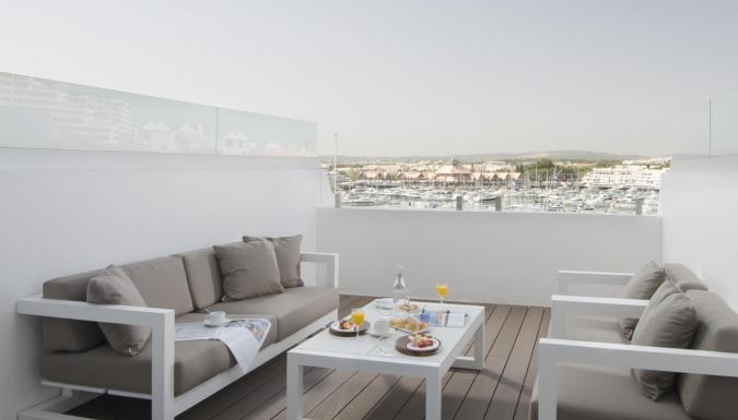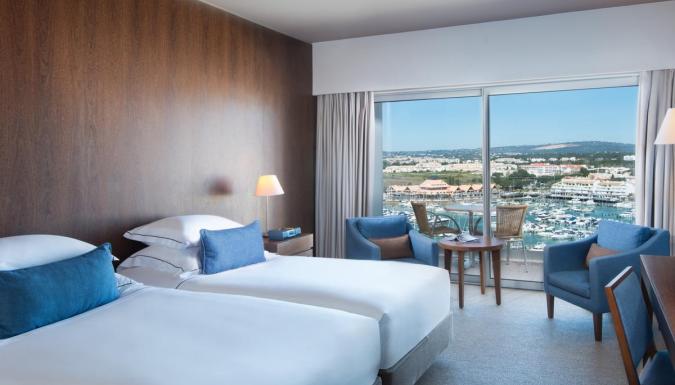 Этот отель располагает большим открытым бассейном. С одной стороны отеля окна выходят на пристань для яхт Виламоура, а с другой — на Атлантический океан. Отель построен на территории частного сада площадью 30 000 кв. м.