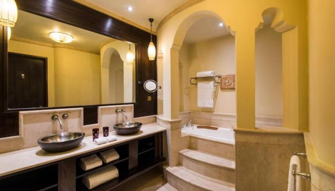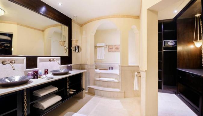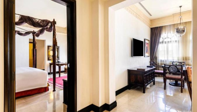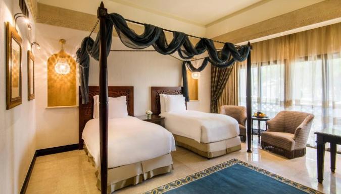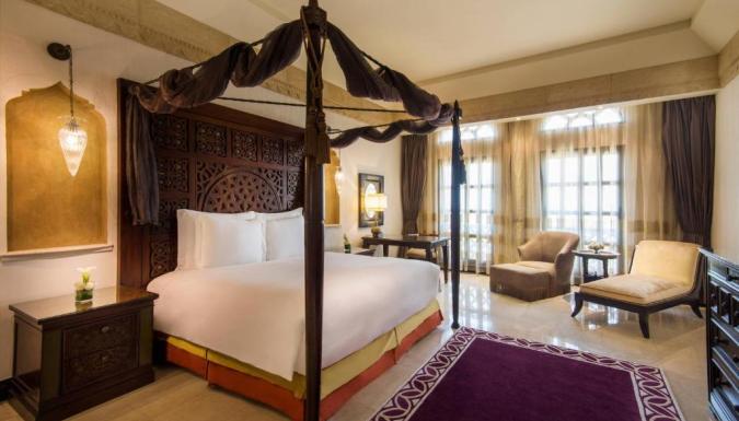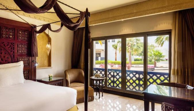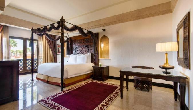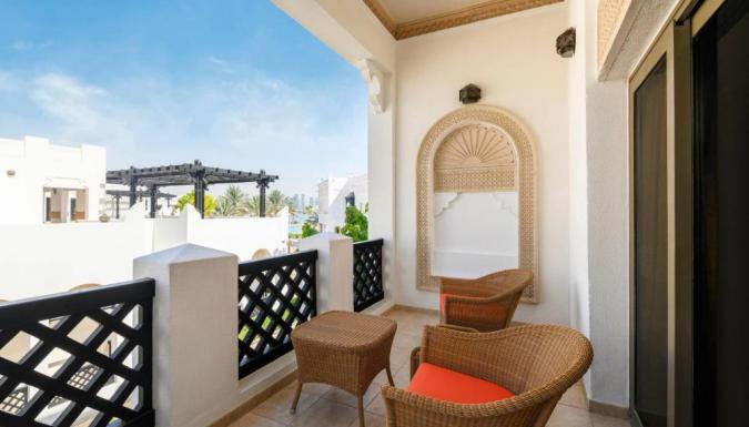 Все номера курортного отеля Sharq Village обставлены кроватями с балдахином и оформлены в восточном стиле с использованием деревянных элементов декора с оригинальным орнаметром. С собственного балкона открывается вид на курорт или залив Доха. В отделанной мрамором ванной комнате установлена глубокая ванна и тропический душ