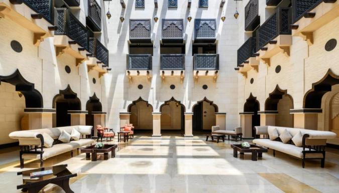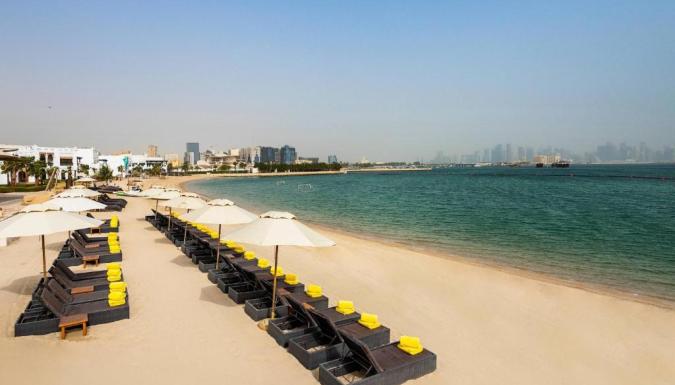 Уединенный роскошный курортный отель Sharq Village & Spa, a Ritz-Carlton расположен рядом с пляжем. Отель оформлен в традиционном арабском стиле и оснащен самыми современными удобствами. Номерной фонд отеля составляют 174 номера с видом на залив Доха. Территория отеля занимает береговую линию протяженностью 350 метров. В распоряжении гостей пейзажный бассейн площадью 1400 кв. метров и большой оздоровительный центр.